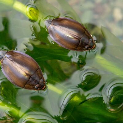 コウチュウ目の仲間の中で「ミズスマシ科」に含まれる昆虫で、日本では20種ほどが確認されています。この仲間は水辺で生活する「水生コウチュウ」の仲間になります。